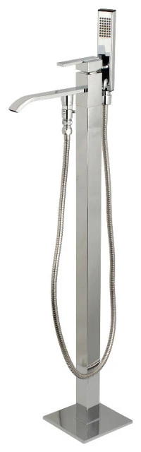 Distinguished for their stately configuration and artsy architecture, freestanding tub faucets are the perfect fixture for any contemporary home to both complement a freestanding tub and act as a beautiful ornamental piece in your bathroom. As the perfect accompaniment to your tub, the Executive freestanding tub faucet with hand shower will surely complete your refined bathroom decorum with the help of its premium, glistening polished chrome finish and hand shower. The solid brass construction also makes for a heavy, quality made product.