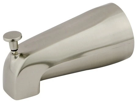 Kingston Brass K188A8 5-1/4 Inch Zinc Tub Spout with Diverter, Brushed NickelThe sleek body and curved headpiece of this tub spout evokes a simplistic design, giving your bathroom a universal appeal. A featured diverter lever above the head enables water to switch its flow between the tub spout and the shower head. Choose from an array of finishes to coordinate with your bathroom ensemble.Product Dimension : 5.25″L x 2.63″W x 2.63″H, Item Weight (lbs) : 0.7