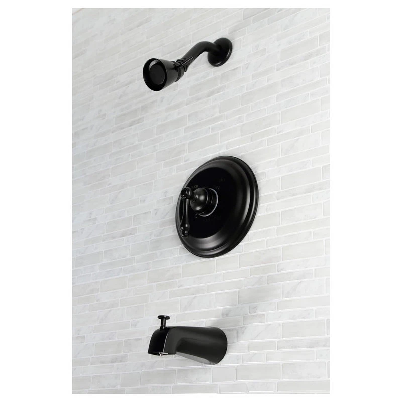 The traditional charm of this tub and shower faucet brings classical artistry to your home. Complete with an easy-to-turn lever handle, an optimum bathing experience awaits. Enjoy the sturdy brass construction and available premium finishes for a fixture that will last for years to come. A pressure balanced valve is included for safety and protection against accidental burns.Kingston Brass KB363.AL Features: