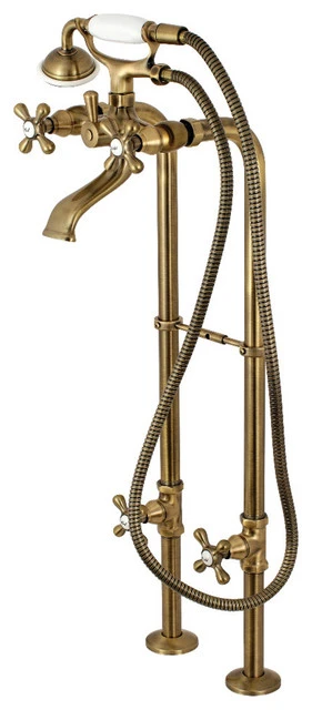 Kingston Brass CCK266K3 Kingston Freestanding Tub Faucet with Supply Line and Stop Valve, Antique BrassDistinguished for its elegance, sophistication, and exquisite architecture, this freestanding tub faucet is the perfect fixture for any traditional home. Allow it to both complement your freestanding tub and act as a beautiful ornamental piece in your bathroom. As the perfect accompaniment to your tub, the Kingston Freestanding Tub Faucet with Supply Line, Stop Valve and Handle will surely complete your refined bathroom decorum with the help of its premium, glistening antique brass finish and hand shower. The solid brass construction also makes for a heavy, quality made product.Product Dimension : 36.88″L x 9.06″W x 6.57″H, Item Weight (lbs) : 27.68