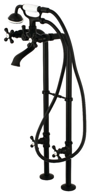 Distinguished for its elegance, sophistication, and exquisite architecture, this freestanding tub faucet is the perfect fixture for any traditional home. Allow it to both complement your freestanding tub and act as a beautiful ornamental piece in your bathroom. As the perfect accompaniment to your tub, the Kingston Freestanding Tub Faucet with Supply Line, Stop Valve and Handle will surely complete your refined bathroom decorum with the help of its premium, glistening matte black finish and hand shower. The solid brass construction also makes for a heavy, quality made product.