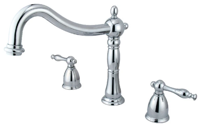 - Widespread deck mounted installation – 3 hole faucet with 8″ to 36″ faucet centers