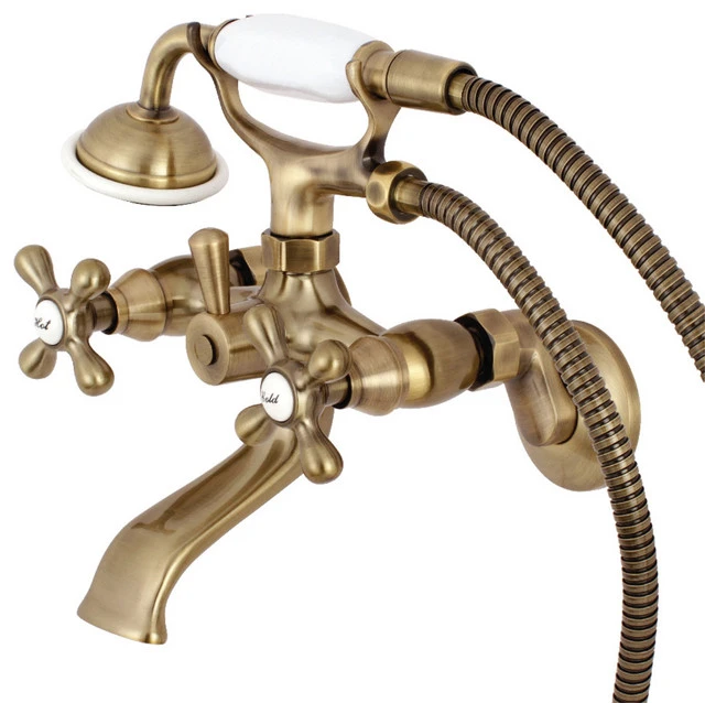 Kingston Brass KS265AB Vintage Adjustable Center Tub Wall Mount Clawfoot Tub Faucet, Antique BrassWall mount clawfoot tub faucets are the perfect fixture to add decorative flair within your bathroom because of their unique architectural elements. With vintage opulence, this will complete your refined bathroom decorum with the help of its premium antique brass finish and traditionally styled handheld shower. The solid brass construction also makes for a heavy, quality made product.Product Dimension : 8.94″L x 6.56″W x 4.31″H, Item Weight (lbs) : 8.05