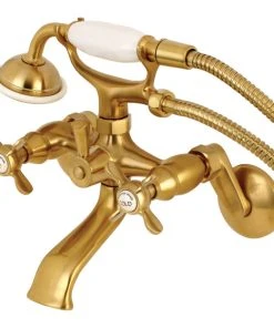 Wall mount clawfoot tub faucets are the perfect fixture to add decorative flair within your bathroom because of their unique architectural elements. With vintage opulence, this will complete your refined bathroom decorum with the help of its premium antique brass finish and traditionally styled handheld shower. The solid brass construction also makes for a heavy, quality made product.Kingston Brass KS286 Features: