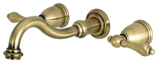Kingston Brass KS3023AL Restoration Two-Handle Wall Mount Tub Faucet, Antique BrassA Roman tub filler is an excellent fixture that will both provide exceptional performance while boasting unsurmountable elegance within your home. The Restoration 8-Inch Center Wall Mount Roman Tub Filler aids in a whole-body rejuvenation as it provides the perfect cascade of water at just the right temperature, guaranteed by its ergonomic dual lever handles. Rejuvenate both your soul and body with a well-deserved rejuvenation treatment with this product.Product Dimension : 13″L x 10.31″W x 2.56″H, Item Weight (lbs) : 7.53