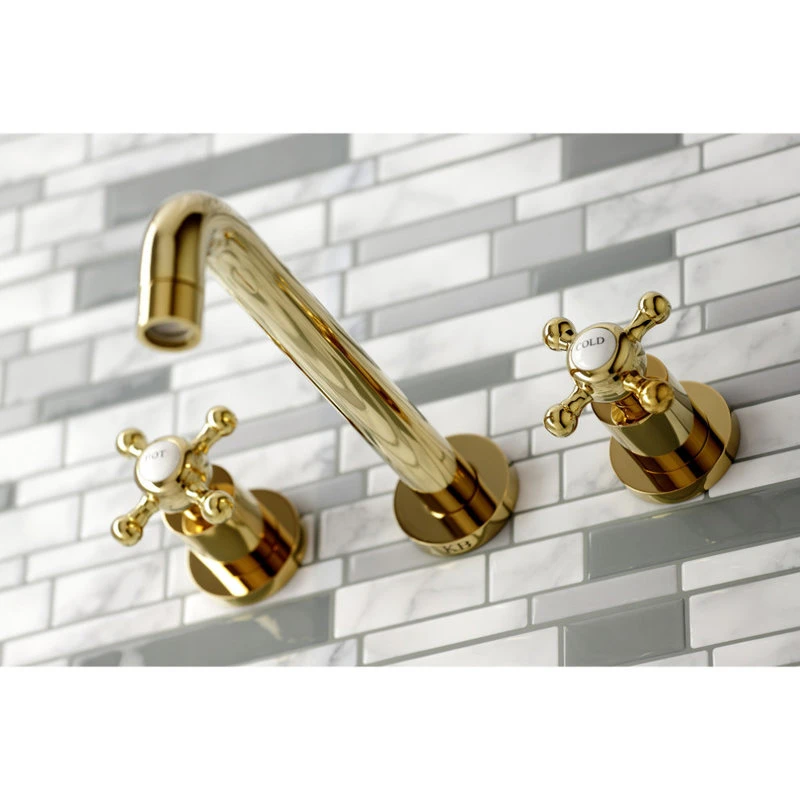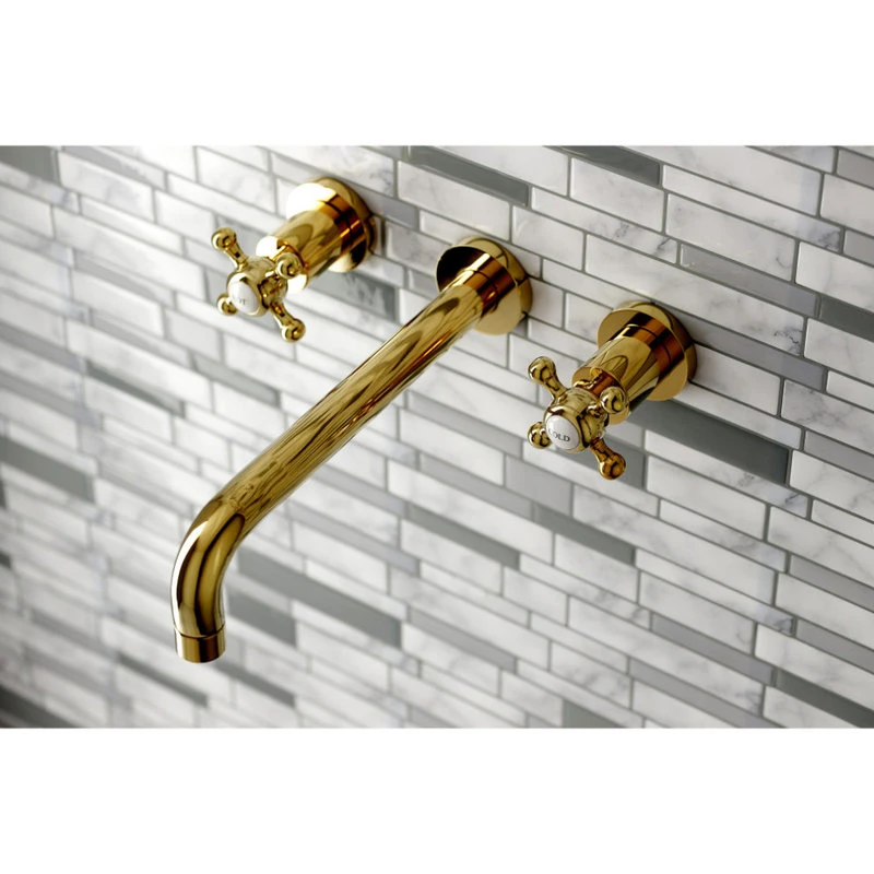 Kingston Brass KS8022BX Two-Handle Wall Mount Tub Faucet, Polished Brass