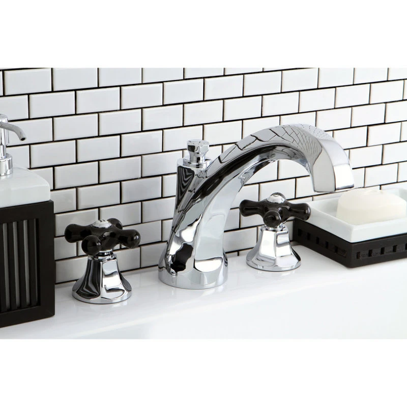 Bathe in style and opulence with the Metropolitan Onyx Roman Tub Filler. Fill any bathtub by turning the premium black porcelain handles. These handles provide a sharp contrast with the faucet’s finish providing a stunning design. Enjoy this faucet’s function and beauty for years to come thanks to its solid brass construction and ceramic disc cartridges.