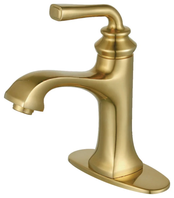 Classical artistry from the late 19th Century to early 20th Century is mirrored beautifully within this faucet’s traditional charm. Single-hole bathroom faucets provide a more streamlined look. Also, they will allow your bathroom to appear more spacious with the limited counter space they require. The Restoration single-handle bathroom faucet with push pop-up and deck plate and its featured sturdy brass construction and premium brushed brass finish are guaranteed to glamorize your home’s ensemble for years to come. Bring this faucet to your home to offer a touch of old design and exquisite detail. A matching finish drain is also included.