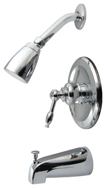 The exquisite design of this tub and shower faucet tastefully flatters the elegant architecture of traditional homes with its fine detailing. Complete with an easy-to-turn lever handle, an optimum bathing experience awaits. Enjoy the sturdy brass construction and premium polished chrome finish for a fixture that will last for years to come. Internal valve hardware is included for your use.
