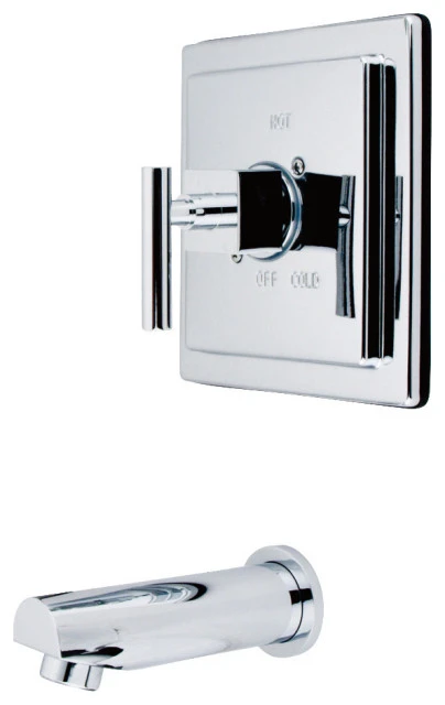 This tub and shower faucet’s modern features create a bold and edgy design in your bathroom. Complete with an easy-to-turn lever handle, an optimum bathing experience awaits. Enjoy the sturdy brass construction and premium polished chrome finish for a fixture that will last for years to come. Valves are sold separately.