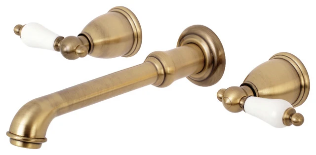 Kingston Brass Two-Handle Wall Mount Bathroom Faucet, Antique Brass