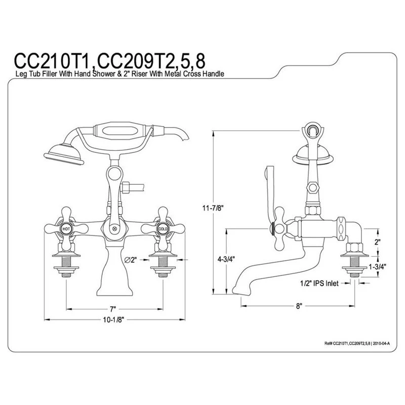 This clawfoot tub filler is constructed of high quality brass to ensure reliability and durability. Its premier finish resists tarnishing and corrosion. All mounting hardware is included and standard US plumbing connections are used.