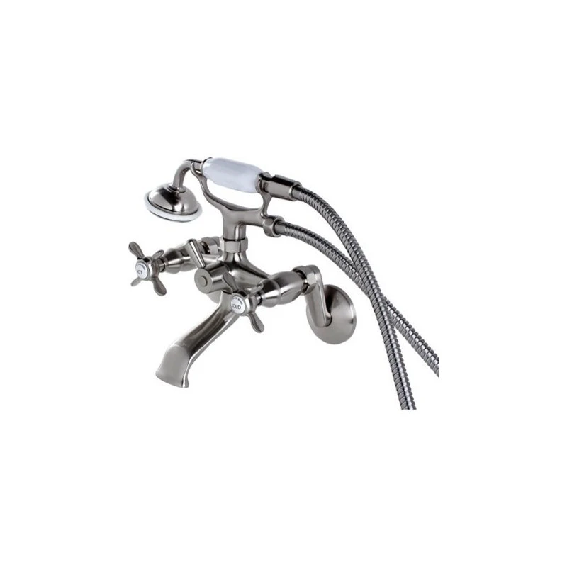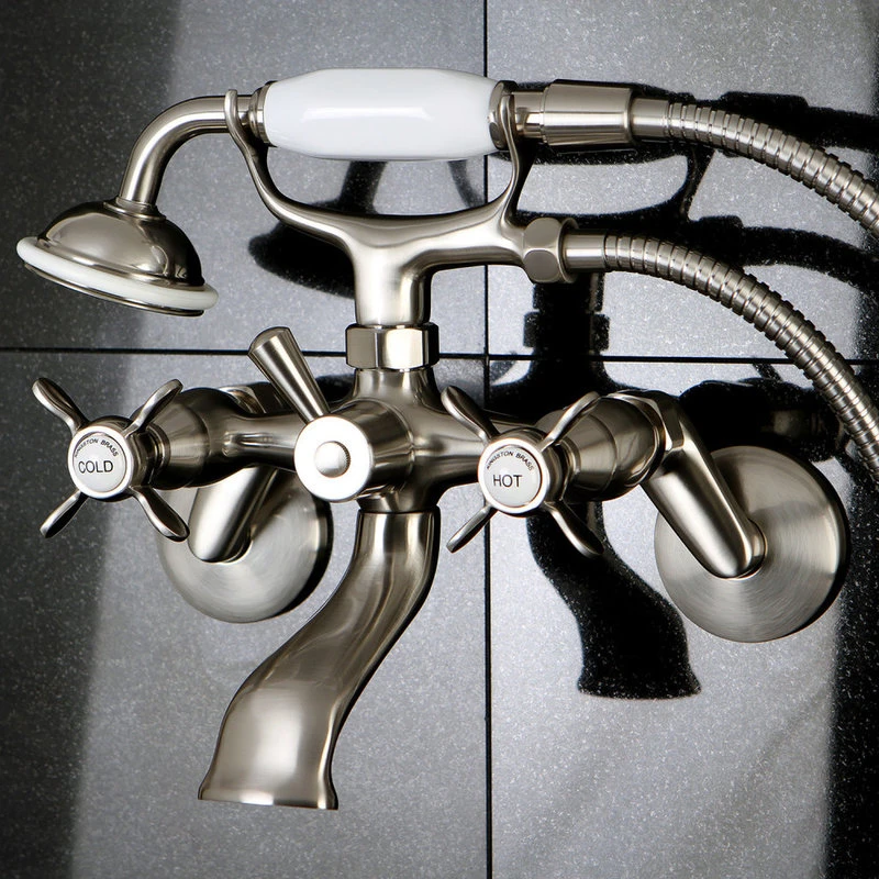 Fill your clawfoot or freestanding tub with the Victorian Clawfoot Tub Filler with Hand Shower. Designed for wall-mount installations, this faucet will fit anything between 3-9″ centers. This tub filler is constructed from solid brass for outstanding performance and durability. The hand shower is attached to a 59″ hose allowing you to pull it far out during use. This tub filler will complete your clawfoot tub and transform your bathroom to a luxury getaway.