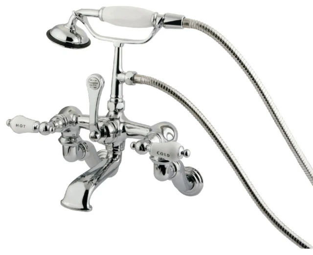 Kingston Brass Wall Mount Clawfoot Tub Faucet With Hand Shower, Polished Chrome