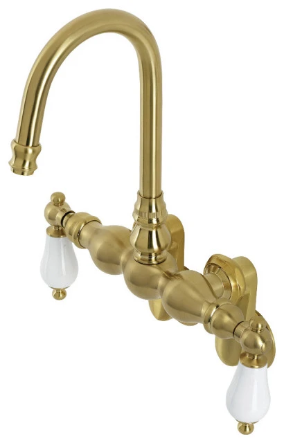 Wall mount clawfoot tub faucets are the perfect fixture to add decorative flair within your bathroom because of their unique architectural elements. with vintage opulence, this will complete your refined bathroom decorum with the help of its premium brushed brass finish. The solid brass construction also makes for a heavy, quality made product.