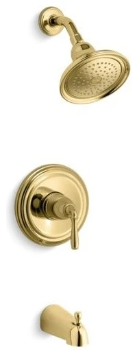 Designed to capture the essence of a bygone era, Devonshire faucets and accessories bring a versatile, traditional style to the bathroom. This bath and shower trim includes a showerhead with Katalyst(R) air-induction spray. By infusing two liters of air per minute, Katalyst delivers a powerful, voluptuous spray that clings to the body with larger, fuller water drops. Pair this trim with a Rite-Temp pressure-balancing valve, which maintains your desired water temperature during pressure fluctuations.