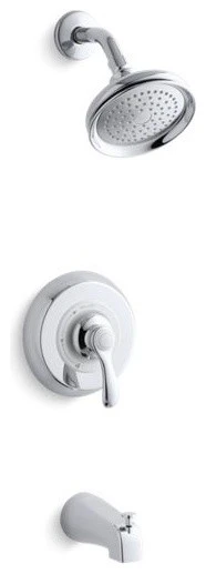 With timeless elegance, Fairfax faucets bring a graceful appeal to your bathroom. This bath and shower trim features an elegant lever handle, bath spout, and single-function showerhead, making it easy to coordinate the look of your space. Pair this trim with a Rite-Temp pressure-balancing valve, which maintains your desired water temperature during pressure fluctuations.