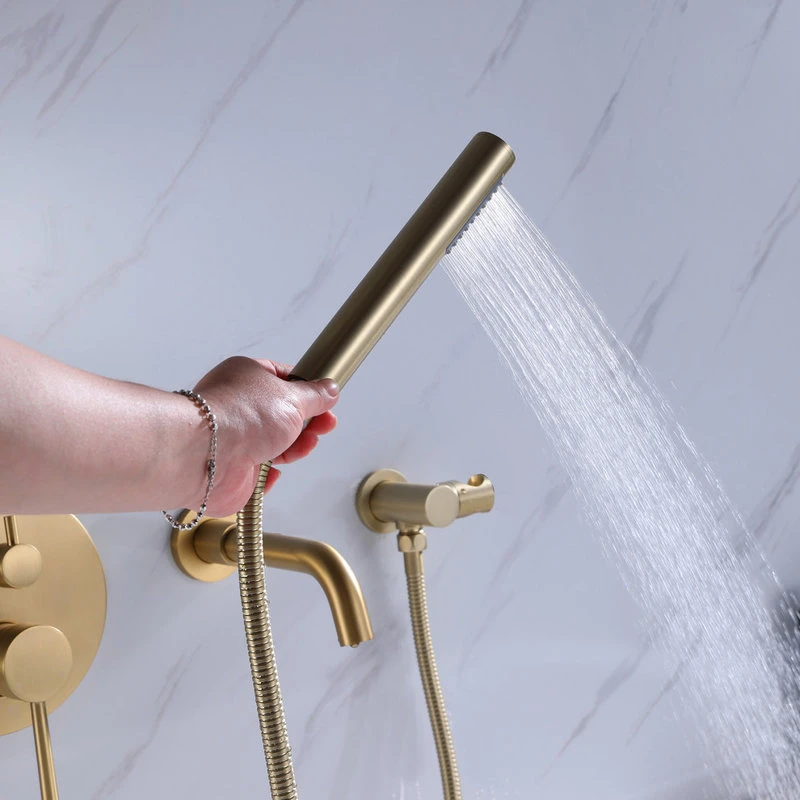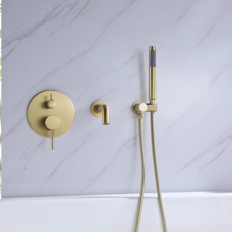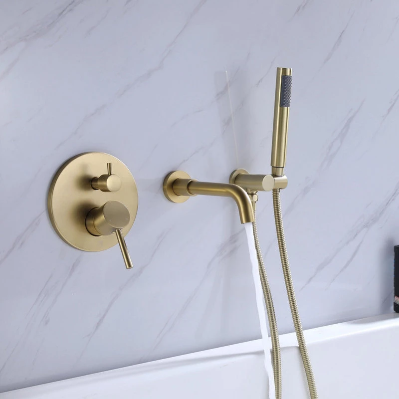 - Both tub spout and handheld shower are constructed of solid brass, ensuring long time use for years to come.