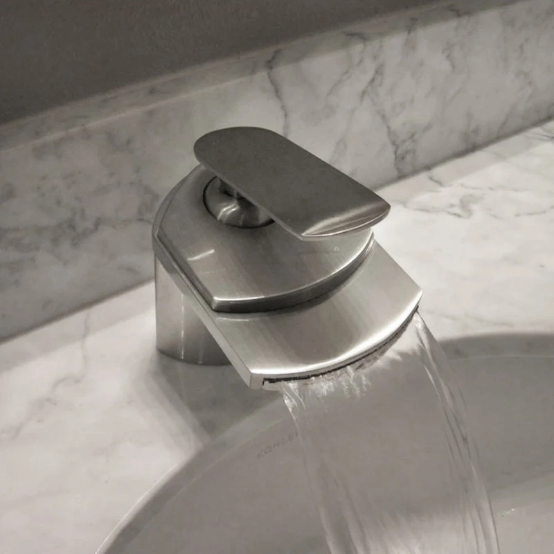 Add a splash of excitement and transform your bathroom into an enchanting oasis with its own waterfall faucet. This eye-catching faucet from Novatto is designed to accommodate lavatory sinks. The water runs through the flat spout creating a three inch wide miniature waterfall. A single lever controls the temperature and water pressure. Durable and easy to clean, the Wave faucet is constructed of solid brass with a lifelong brushed nickel finish. A high pressure ceramic cartridge ensures longevity and trouble-free use. Supply lines, mounting hardware and instructions are included for quick and easy installation. Standard U.S. plumbing installation. AB1953 Low Lead Compliant; cUPC and NSF Certified. Faucet height: 4.5 inches; Spout reach: 2.25 inches; Spout height: 2.25 inches. Just add water and enjoy Novatto’s Limited Lifetime Warranty. Supreme packaging and double boxing ensure damage-free delivery.