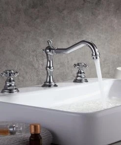 HOMARY Double Handle Bathroom Widespread Sink Faucet Victorian Spout, Chrome