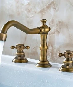 HOMARY Double Handle Bathroom Widespread Sink Faucet Victorian Spout, Antique Brass