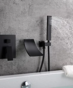 HOMARY Waterfall Wall Mounted Bath Spout Bathtub Faucet With Hand Shower In Matt Black