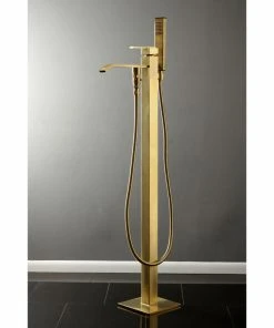 Kingston Brass Freestanding Tub Faucet With Hand Shower, Brushed Brass
