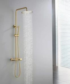 HOMARY Exposed Shower System Thermostatic Rainfall Shower Head Brushed Gold Shower Set