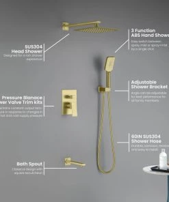 Kibi USA Cube Pressure 3-Function Shower System, Rough-In Valve, Brushed Gold
