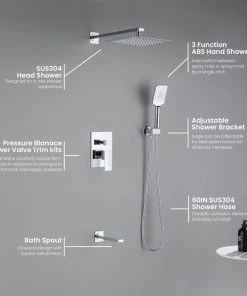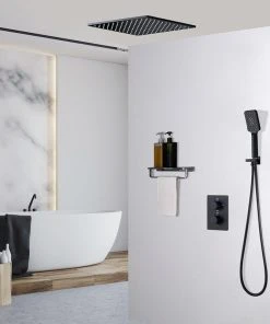 HOMARY 2-Function Thermostatic Shower System With Square Rain Shower And Hand Shower, 1