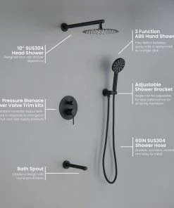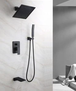 HOMARY Wall Mount 10″ Rainshower Hand Shower And Tub Spout Shower System, Matte Black