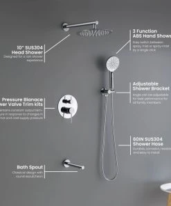Kibi USA Circular Pressure 3-Function Shower System, Rough-In Valve, Chrome