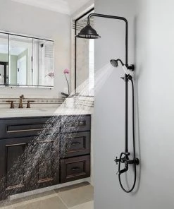 HOMARY Classic Bathroom Exposed Rainfall Shower System With Tub Spout Antique Black