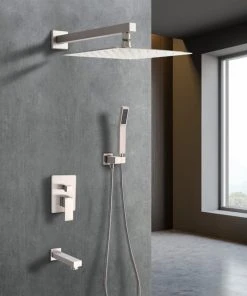 HOMARY Wall Mount 10″ Rainshower Hand Shower, Tub Spout Shower System, Brushed Nicke