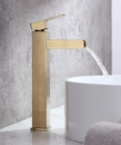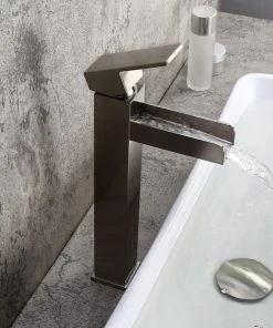 Kibi USA Waterfall Single Handle Vessel Sink Faucet, Brushed Nickel, With Drain