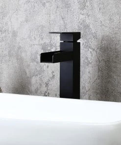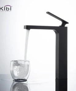 Kibi USA Cubic Single Handle Vessel Sink Faucet KBF1003, Matte Black, W/ Drain