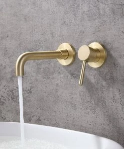 HOMARY Brushed Brass Single Lever Wall Mounted Bathroom Faucet Swivel Sink Faucet Brass