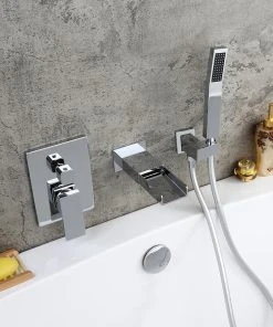 Homary Waterfall Wall-Mount Bathtub Filler Faucet & Handshower, Chrome