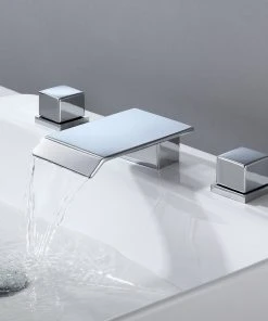 HOMARY Waterfall Widespread Bathroom Sink Faucet Square Double Handle Solid Brass, Chro