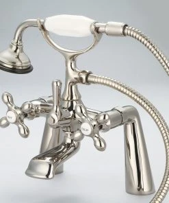 Water Creation Vintage Classic Deck Mount Tub Faucet With Handshower, Polished Nickel Pvd Finis