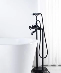 Anzzi Tugela 3-Handle Claw Foot Tub Faucet With Hand Shower, Matte Black
