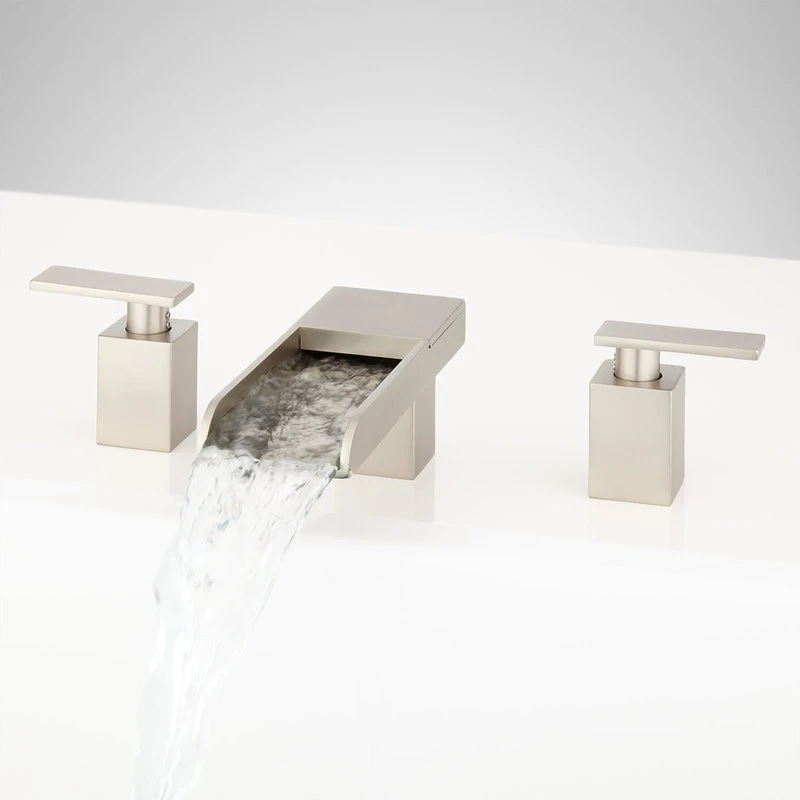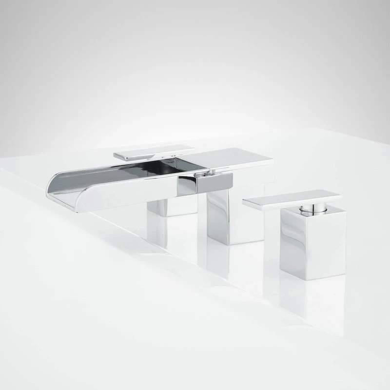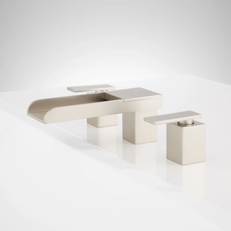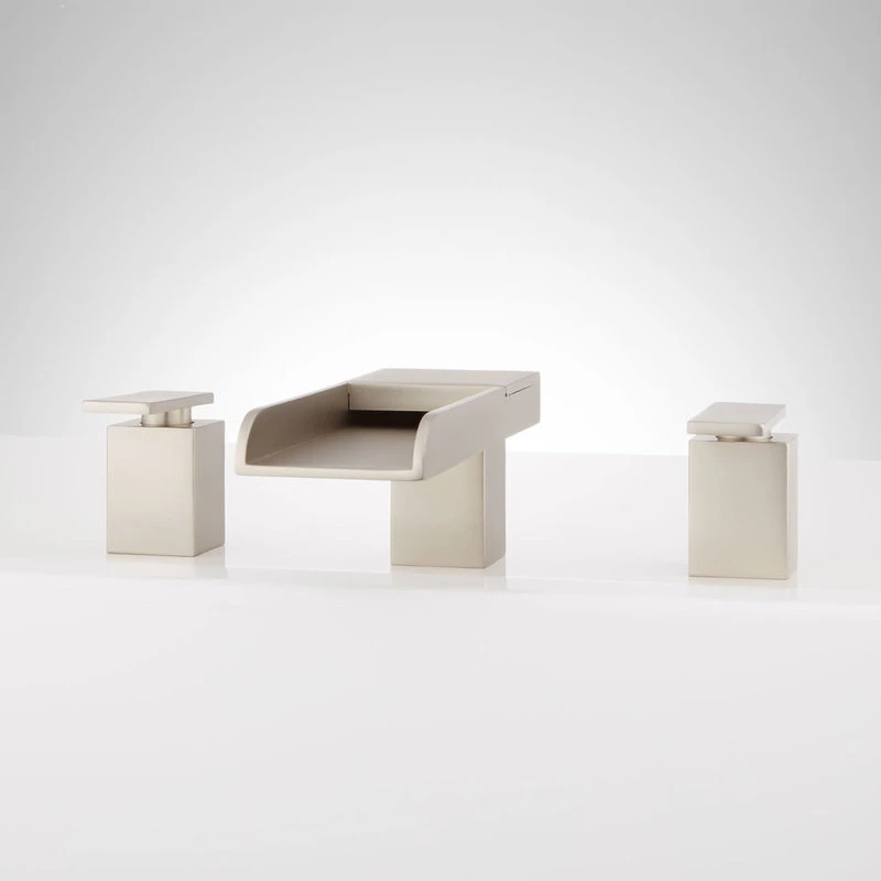The Willis Roman Tub Faucet combines clean lines with a waterfall design. The spout on this faucet provides a steady flow of water that cascades into your bathtub. Made of solid brass, the Willis is beautiful and built to last.Signature Hardware 924625 Features: