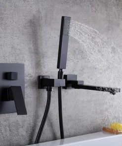 HOMARY Moda Waterfall Matte Black Roman Bathtub Filler Faucet With Handshower
