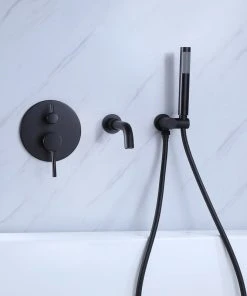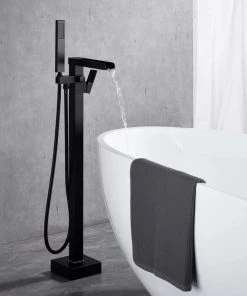 JimsMaison Single Handle Floor Mounted Freestanding Tub Filler With Hand Shower, Matte Blac