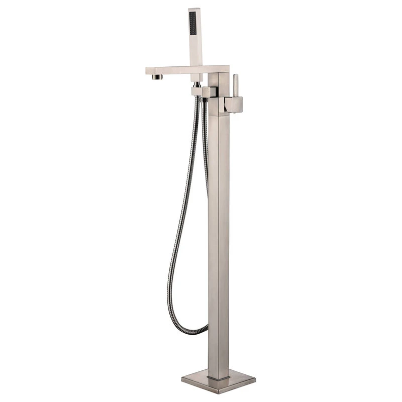 - Freestanding tub faucet with handheld shower