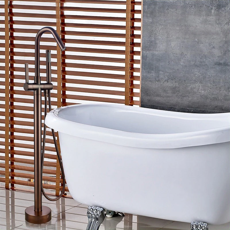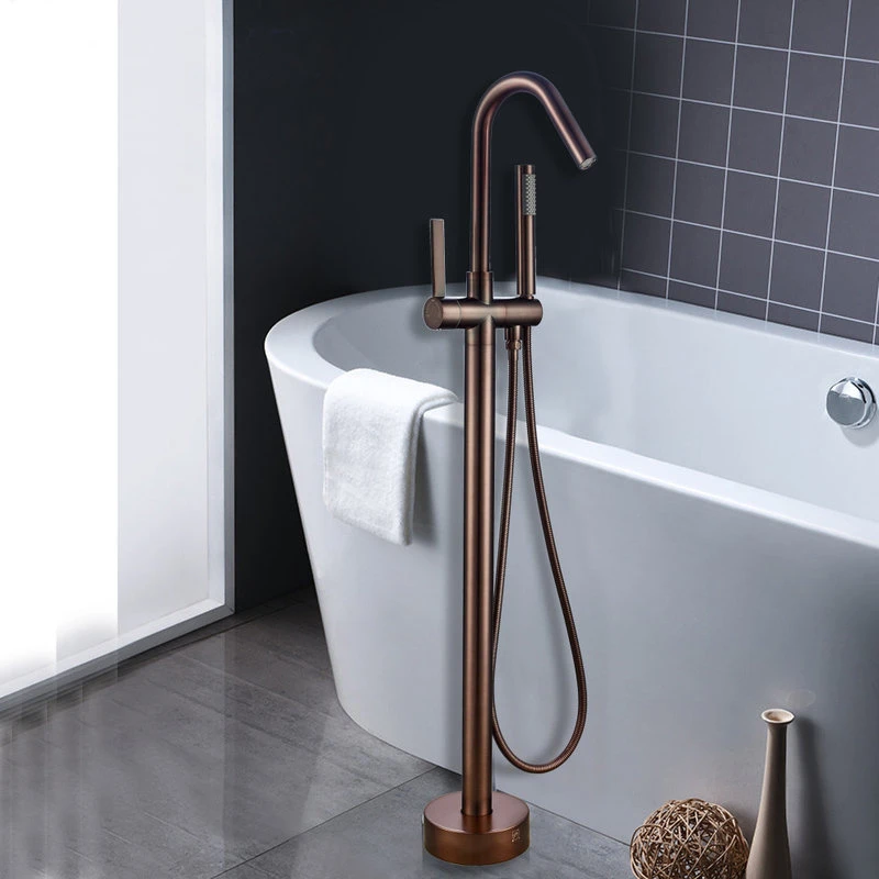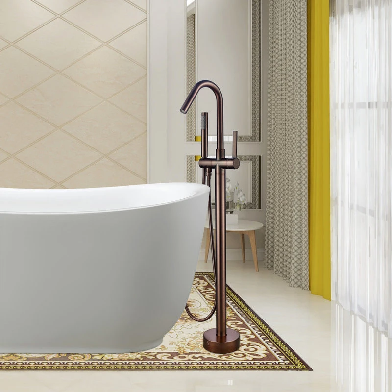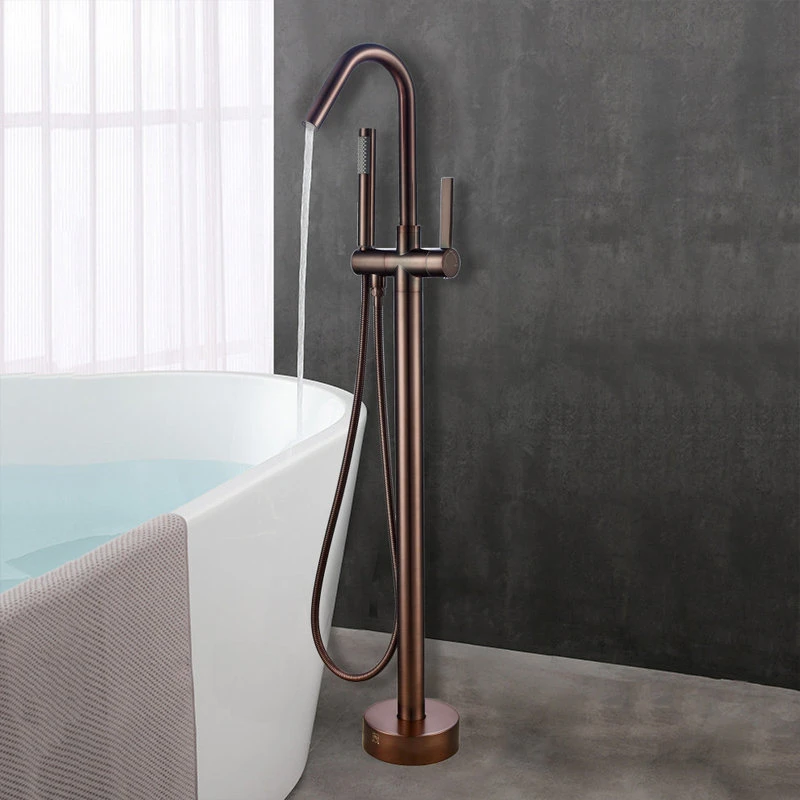 - Freestanding tub faucet with handheld shower