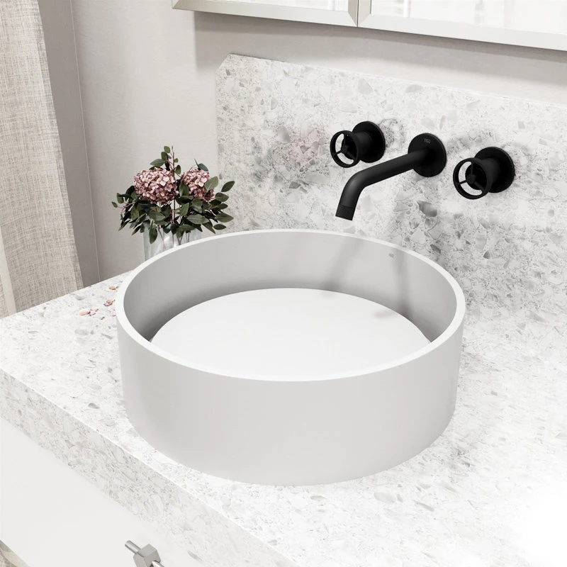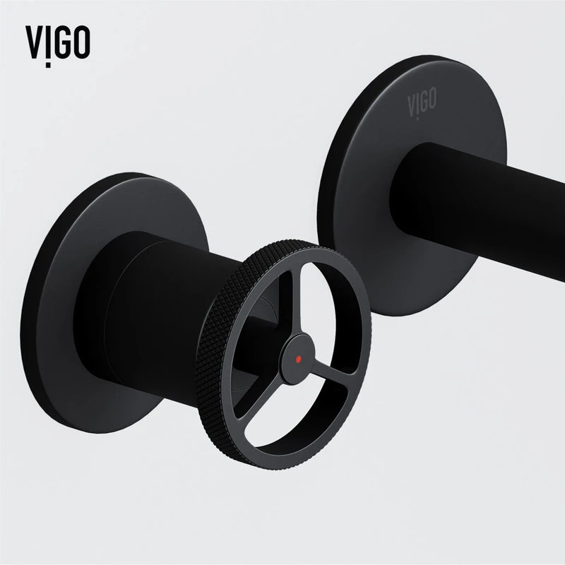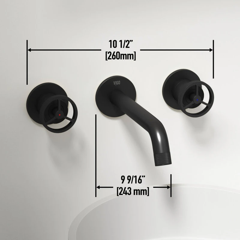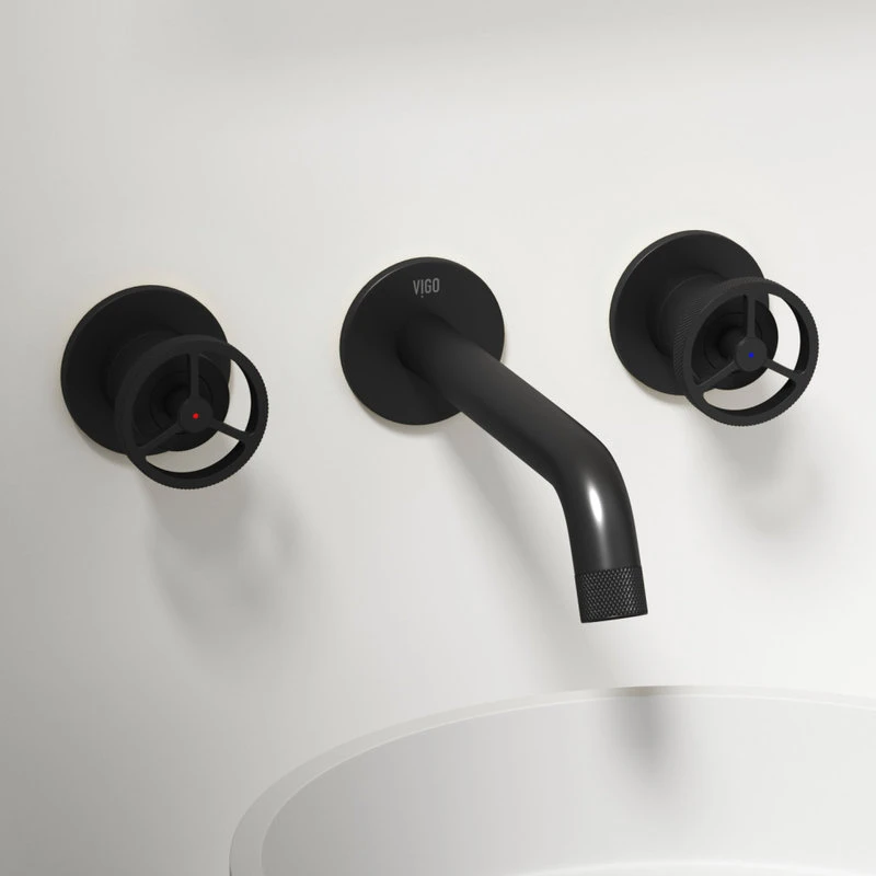 Trendy yet minimalist, The Cass wall mount bathroom faucet from VIGO elevates any bathroom aesthetic. Drawing inspiration from New York City’s industrial center, the round wheel handles feature diamond knurling details and mimic the look of pipes. The two handles effortlessly turn to control the water temperature and volume as the curved spout delivers a reliable flow of water into the sink below. Pair this beautiful wall mounted bathroom faucet with any bathroom vanity or VIGO vessel sink.