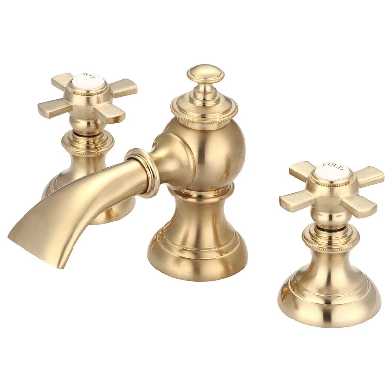 Ancona Prima Single Hole Double Cross Handle Bathroom Faucet, Brushed Gold