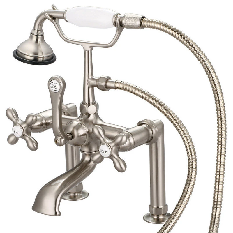 Bring the luxury and elegance of yesteryear to your bathroom with the Vintage Deck-Mount Tub Faucet. It is crafted from solid brass and available in a range of finishes and handle types. It features a hand-held shower and a specially designed faucet to avoid a restricted water flow. Bring a subtle glamour to any space with designs from Water Creation.