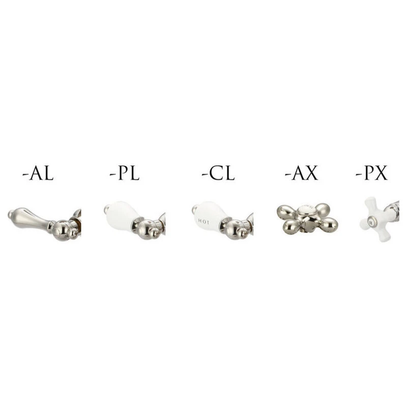 - Available in lever, cross, “Hot” and “Cold” labeled porcelain lever, porcelain lever, and porcelain cross handle styles